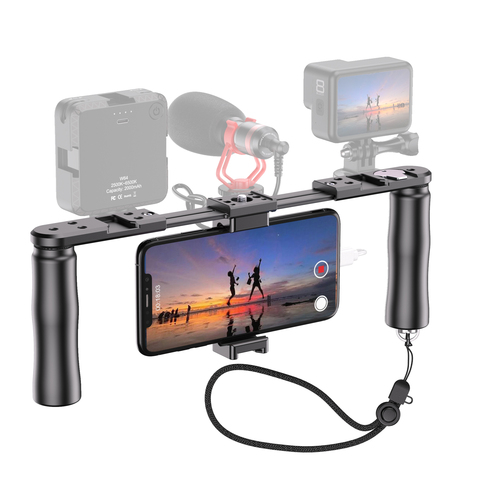 热卖APEXEL Rig Pro智能手机视频钻机电影制作麦克风灯电话视频稳定器手柄三脚架安装座,用于iPhone智能手机